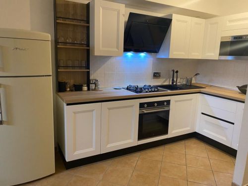 Un angolo cottura a vista, per gioia, una ragazza giovane e solare, che aveva il sogno di organizzare meglio gli spazi funzionali della cucina e allo stesso tempo di avere dei mobili che si adattassero allo stile rustico della casa, non tralasciando però la modernità. In questo progetto abbiamo realizzato, quindi, una cucina contemporanea, con dettagli neri.