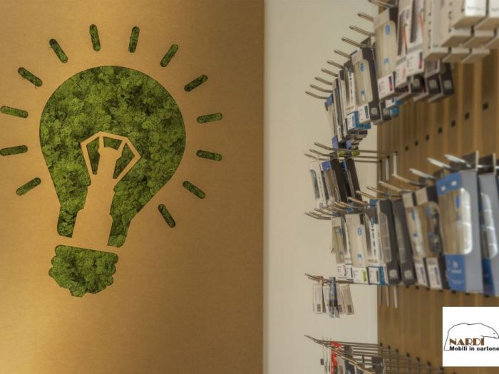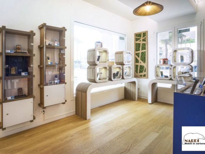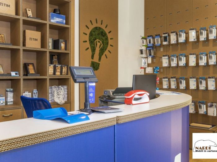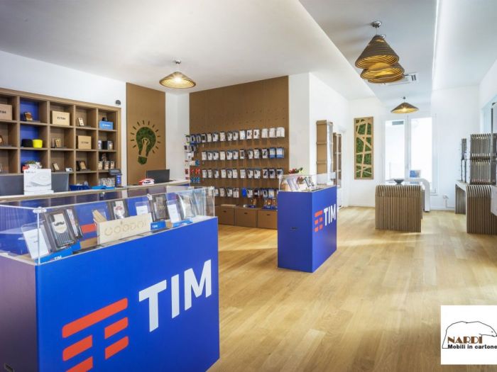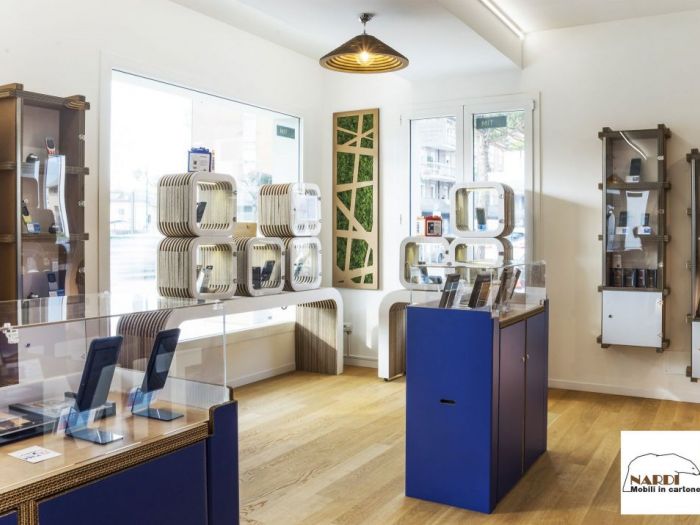 Allestimento di un negozio di telefonia a jesolo, completamente su misura ed altamente ecologico.