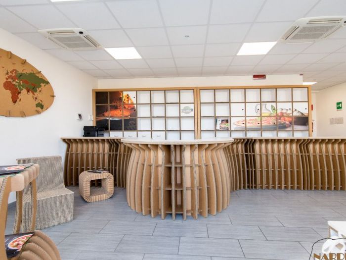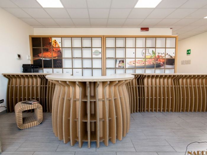 Azienda bolognese a basso impatto ambientale che ha voluto marcare questa sua filosofia arredando la hall della sede commerciale con i nostri prodotti. La reception è composta da moduli “galambra” con piani in mdf, mentre la libreria da moduli “flua” con ante stampate.