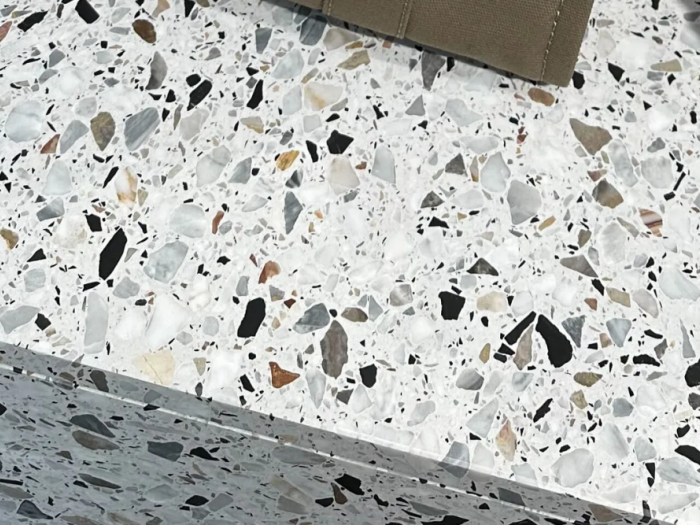 Pavimenti speciali ha inoltre prodotto e fornito due tipologie di lastre di rivestimento destinate all’installazione su parete. Le lastre, del tipo “concrete” e “terrazzo”, sono state fabbricate artigianalmente creando dei manufatti unici e personalizzati.