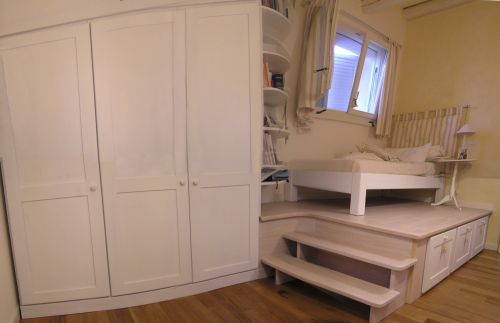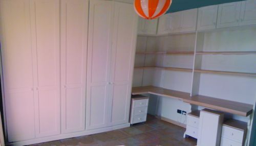 Progettazione e realizzazione camera letto con comodi scrivania e angolo lettura zona studio. Stile shabby-chic / contemporaneo
