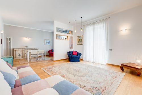 L'appartamento si presentava composto da due camere, soggiorno, cucina ed un bagno, per una superficie di oltre mq. 80. L'intervento progettuale ha previsto una diversa riconfigurazione degli spazi cercando di sfruttare al massimo la superficie disponibile riuscendo in questo modo a ricavare un secondo bagno, una cabina armadio ed un modesto ma funzionale spazio ripostiglio/lavanderia a scomparsa nel disimpegno, oltre alle due camere da letto ed un ampio soggiorno con angolo cottura. Durante la ristrutturazione si sono rese necessarie alcune opere di consolidamento delle strutture portanti e dei solai. Con l'occasione è stato possibile fornire l'intero appartamento di un impianto di riscaldamento a pavimento oltre ad un impianto di condizionamento canalizzato a soffitto. La scelta di una pavimentazione in gres porcellanato effetto legno ha permesso la posa su tutti gli ambienti, compresi bagni e cucina, creando in questo modo un piacevole effetto di continuità degli spazi. Il bagno principale, oltre ai due sanitari, è dotato di un lavabo doppio che poggia su una parete rivestita in gres porcellanato effetto tessuto e di un ampio ambiente doccia con seduta in muratura riscaldata da un termoarredo posto al di sotto. Gli arredi principali sono stati tutti realizzati a misura, grazie anche all'ausilio di immagini virtuali in fase progettuale. Controsoffitti e tagli di luce mettono in risalto e configurano gli spazi sottostanti a seconda delle loro funzioni principali. Anno di realizzazione del progetto: 2017