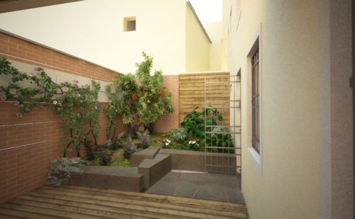 Trasformazione di un antico cortile interno alle cortine storiche ad uso privato in una piccola oasi verde a giardino