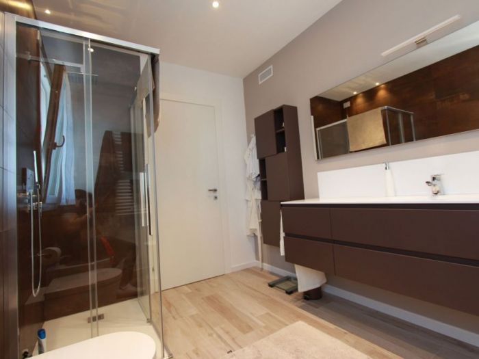 Gande villa di oltre 260 mq ove le richieste del cliente sono state pienamente soddisfatte. Progetto completo, arredamento, materiali, illuminazione e complementi. Supervisione di tutte le opere.