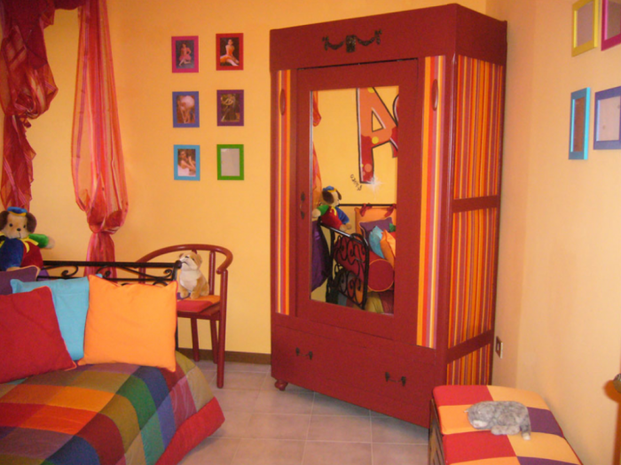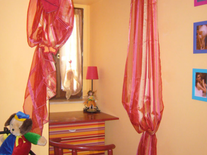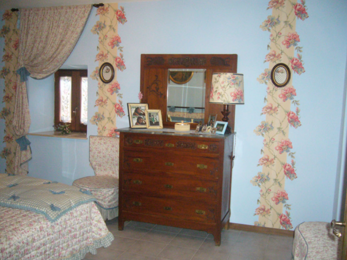 L’immobile fa parte di un organismo che conserva ancora vestigia di un passato storico che lo destinava ad antico convento. La parte in oggetto erano le vecchie stalle. L’atmosfera che lo circonda mi ha portato a ispirarmi a una grande designer gallese, laura ashley, così qui domina la decorazione sia a punta di pennello che a punta di forbice con la carta da parati, rivolgendo sempre lo sguardo verso la novità.
