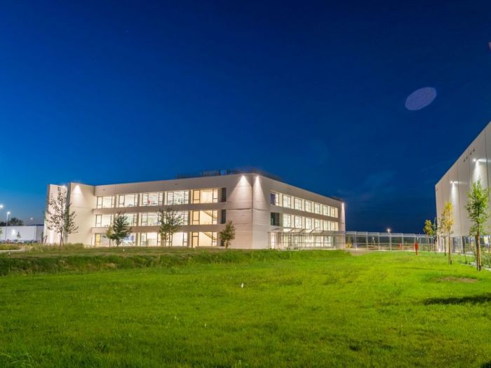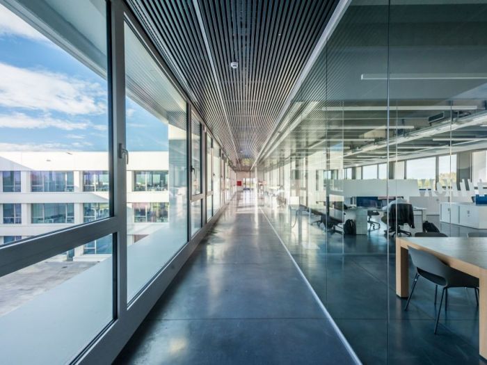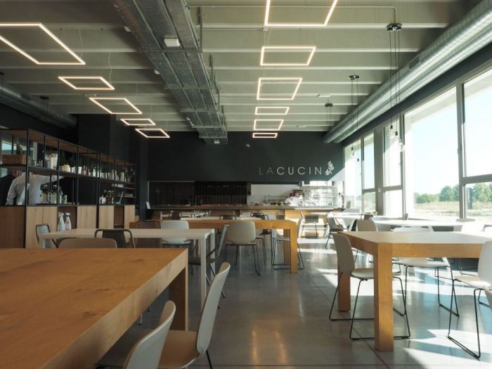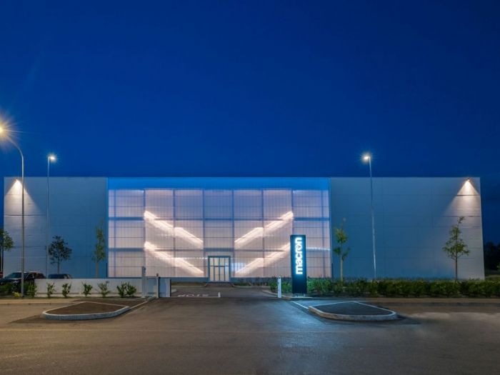 Progetto per la sede uffici, progettazione, laboratori e magazzino del produttore di abbigliamento sportivo macron. Un complesso iconico e innovativo per l'uso della luce e degli spazi.