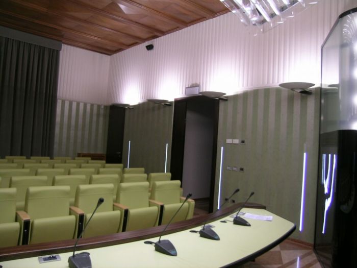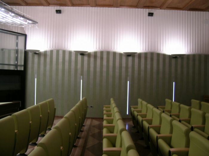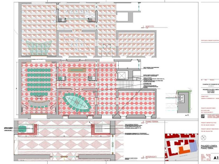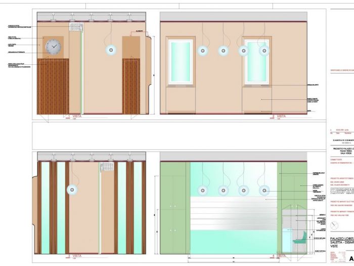 Progetto di ristrutturazione di interni. La sala verde e salette collegate di palazzo manzone nella sede della camera di commercio di ravenna. L'eleganza delle carte e dei colori uniti a materiali pregiati fanno di questi spazi un salotto della fruizione e dell'ascolto.