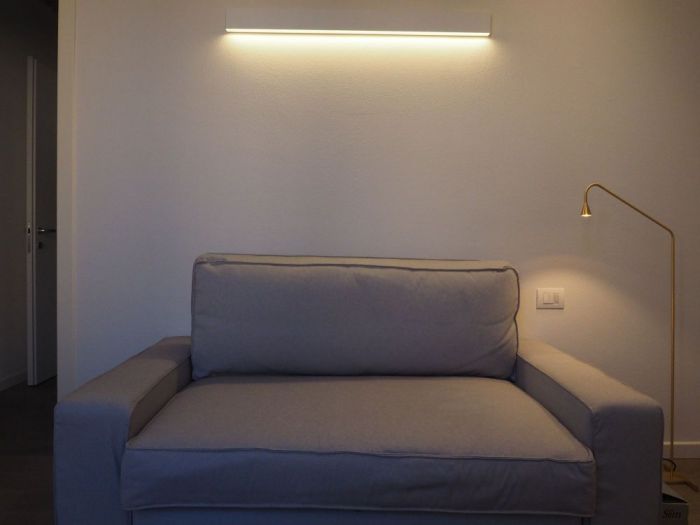Il progetto per un piccolo appartamento con vista. La ristrutturazione, l'arredo, le luci, le scaffalature, pensati per ospitare una collezione e la sua fruizione.